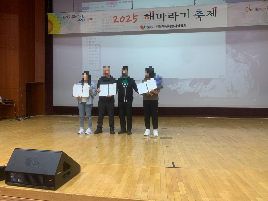 전라북도도지사상을 받은 윤정준시설장님과 정신재활시설협회장상을 받은 박초희님 축하드립니다.