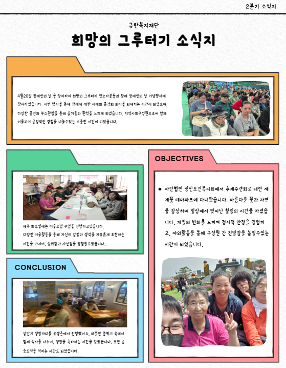 2025년 희망의 그루터기 2분기 소식지 페이지 정보 작성자최고관리자 조회 2,332회 작성일 2026-06-30 14:26:40 댓글 0 본문 2025년 희망의 그루터기 2분기 소식지 이전글 2025년 희망의 그루터기 3분기 소식지 다음글2025년 희망의 그루터기 1분기 소식지 목록 댓글목록 등록된 댓글이 없습니다.